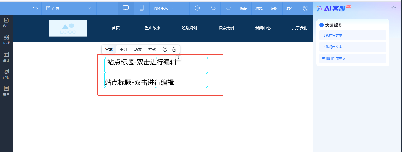 按完Ctrl+↑后,系统会自动在多行的控件下添加容器,使其置于同一容器中。