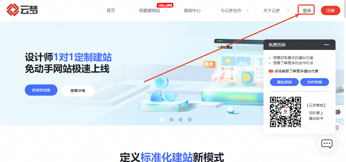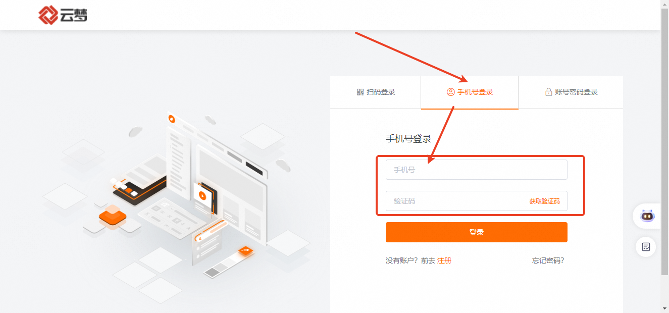 一、通过(www.clouddream.net)登录管理员账号,输入管理员手机号和验证码登录