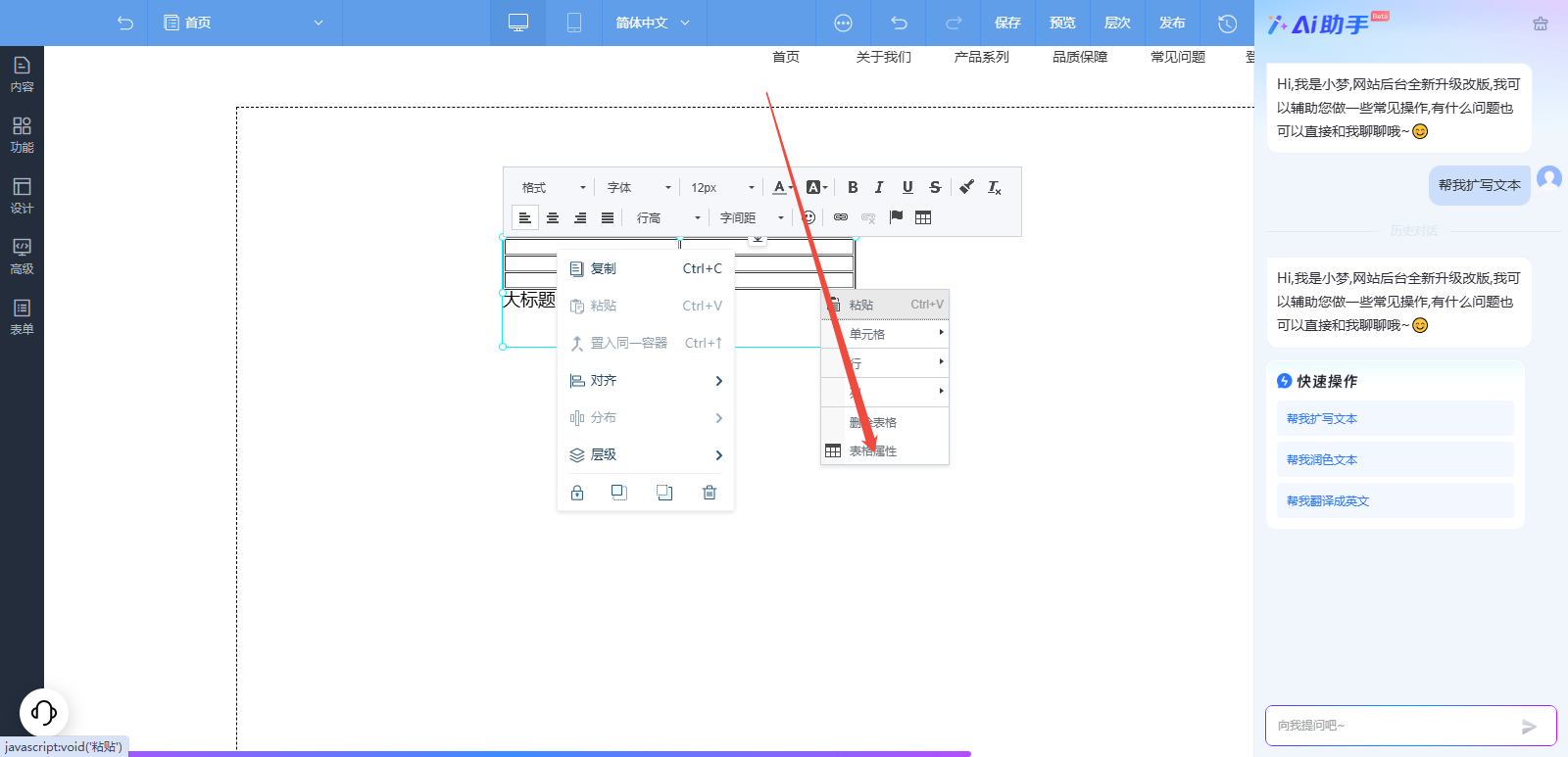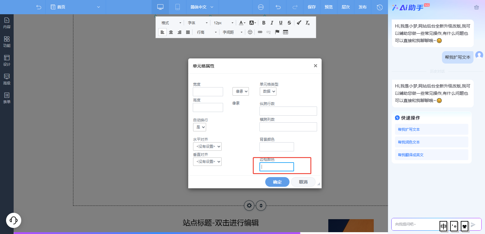 2.可以点击添加的表格在编辑栏表格上右键-单元格-单元格属性-调整边框颜色,请注意,操作默认仅能调整一个单元格颜色,如要调整多个,需要选中多个单元格再进行调整。